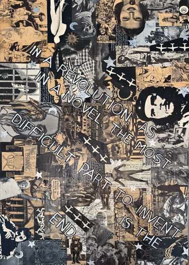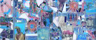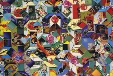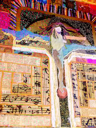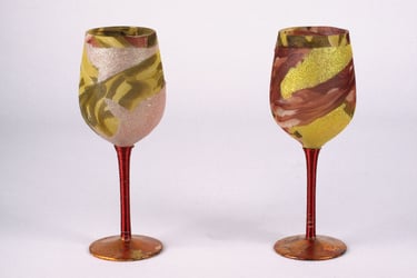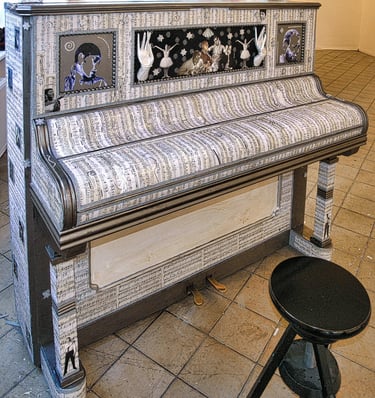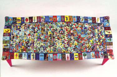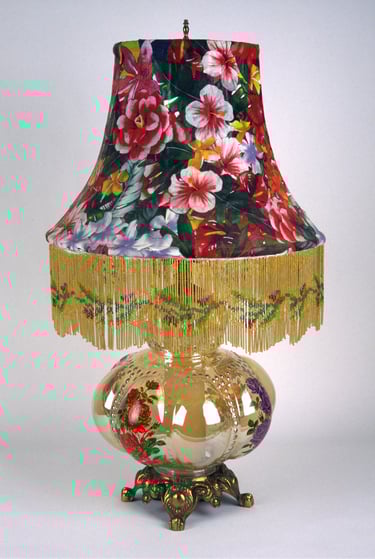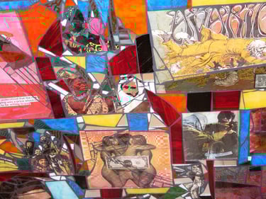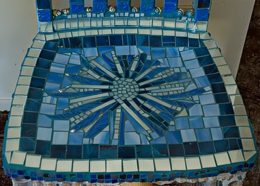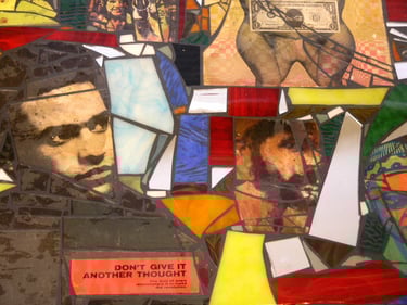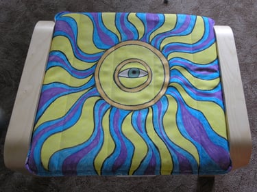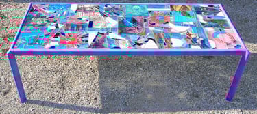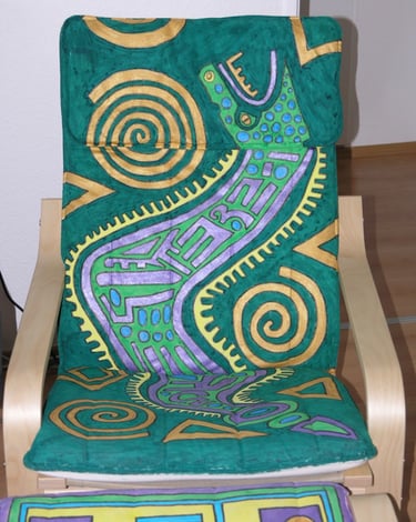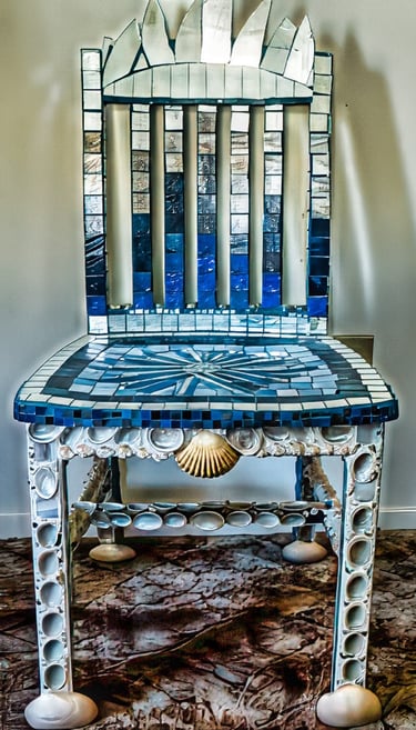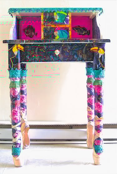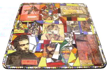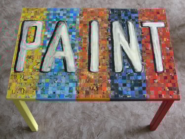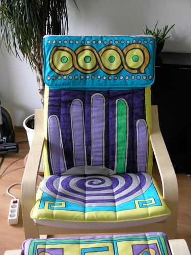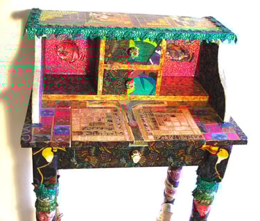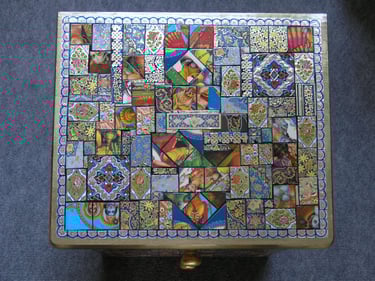 If I had enough glue and time, I'd decorate everything in my house, and everything in my friends' houses. Paper, glass, paint, grout, found objects, fabric... I like working with it all.. Aside from the fabric painted Ikea chairs, all these pieces have wandered off to live with others. My apartment is too small and I can rarely keep what I make, so I'm glad when a friend takes one home.